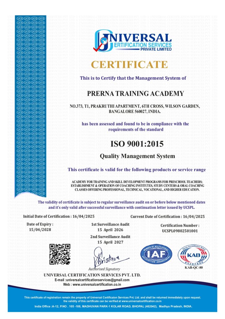 Achieved ISO Certification, recognizing our dedication to quality standards and professional development in teacher training.